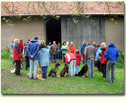 Diesen Anspruch hatten wir damals bereits bei der Gründungssitzung und er lebt immer noch. Bei uns sitzen die Hunde nicht in Boxen und müssen warten, wenn die Menschen ihre Stammtischrunde pflegen; denn wir haben gar keine Boxen für unsere Hunde und wir haben nicht mal ein richtiges Vereinsheim und wir pflegen auch keine Stammtischrunden. Trotzdem sind wir sehr fröhlich und haben Spaß, wenn wir mit unseren Hunden arbeiten. Bei uns steht absolut der Hund im Mittelpunkt, er wird nicht weggesperrt – und wir sind trotzdem (?) sehr erfolgreich im Hundesport. Wenn wir „stammtischeln“ hocken wir meistens im Gras und unsere Hunde liegen entspannt und zufrieden daneben.
